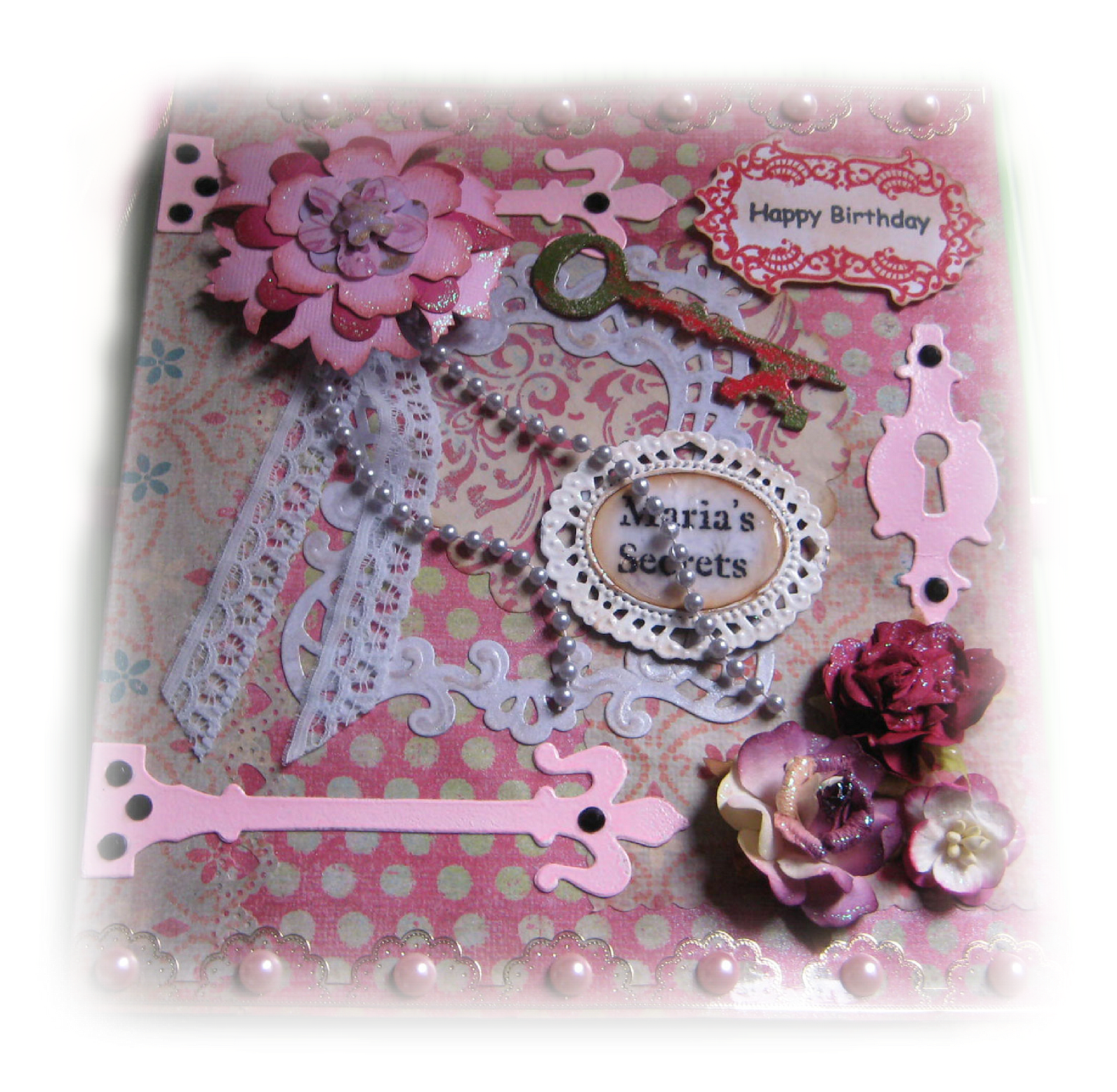 My partner was visiting a cousin who was unwell and sprung on me an hour before he was due to go that it was his cousin's wife birthday. Could I make her a card? well I had been looking for an excuse to take a break from my study so I jumped at the chance to have a little play... Here is what I came up with... I hope you like it!